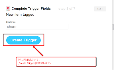 ①トリガ条件: Pocket上で記事に”share”タグが付与される